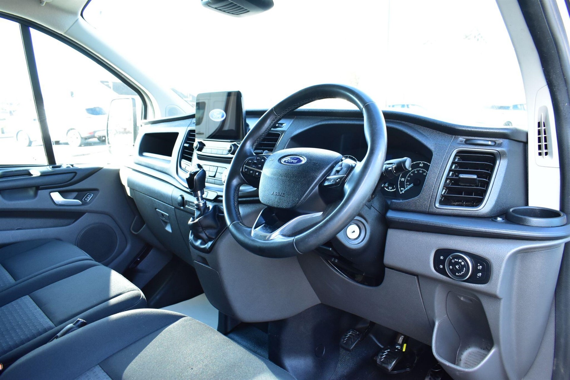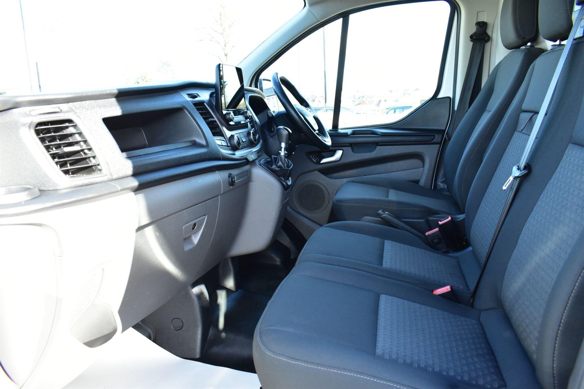 Air Conditioning High Security door locks Tow Bar Colour keyed exterior pack 2 - Transit custom Body colour bumpers Body coloured door mirrors Partially body coloured rear bumpers Front seat pack 13 - Transit Custom Driver seat with lumbar support, armrest and multi-way controls (fore/aft, recline, height, tilt) Dual passenger seats ICE pack 21 - Transit Custom 8" Colour TFT multi-touch screen DAB Radio Emergency assistance FordPass Connect Mini Multimedia Hub 2 USB port Visibility Pack High - Transit Custom Automatic headlamp control Electric windshield defroster Washer fluid level indicator Blind spot monitor Front and rear parking aids Low series cluster Speed control contains leather wrapped steering wheel Aux input socket 180 Degree rear cargo check arms