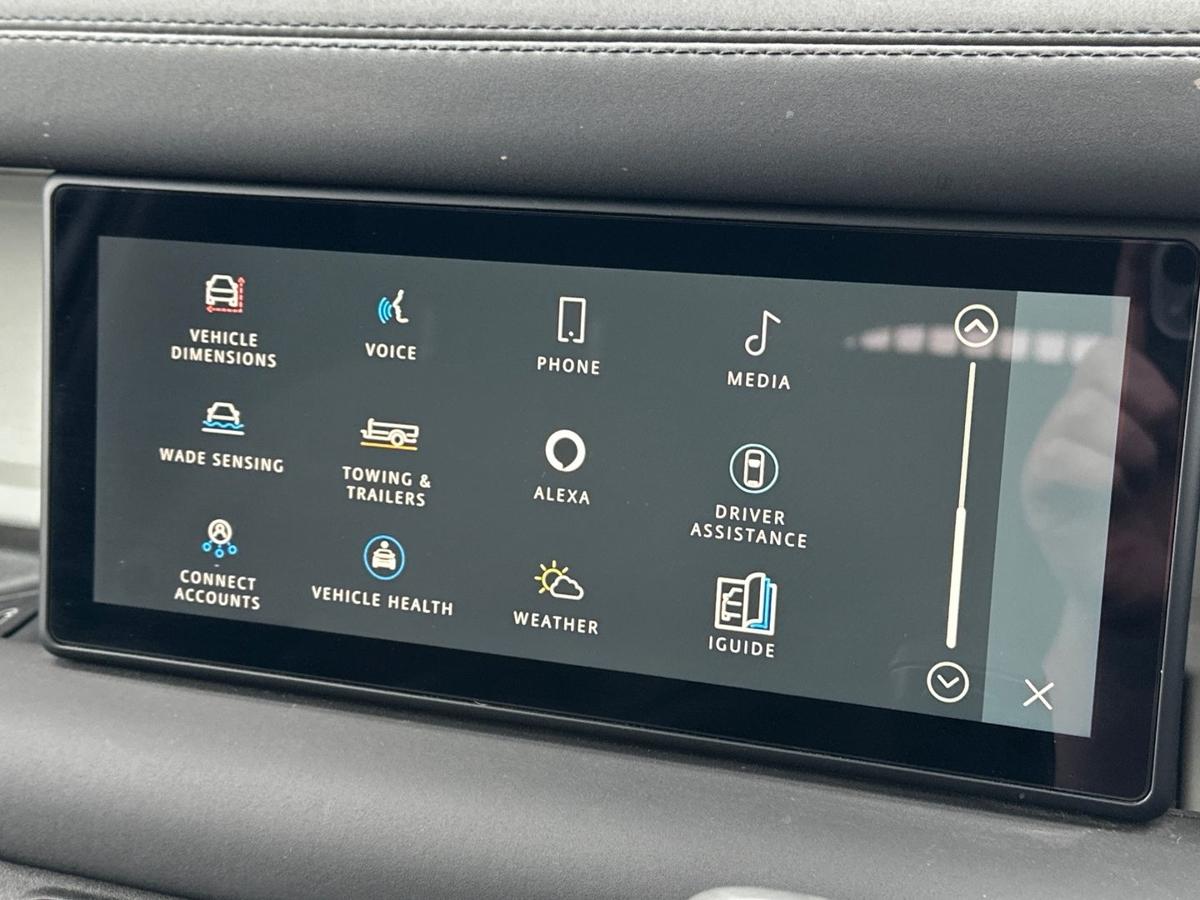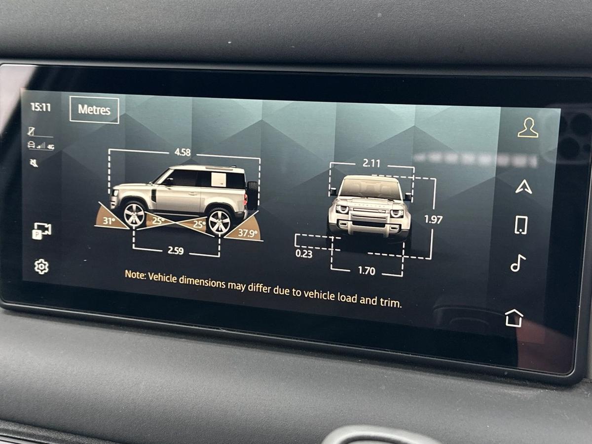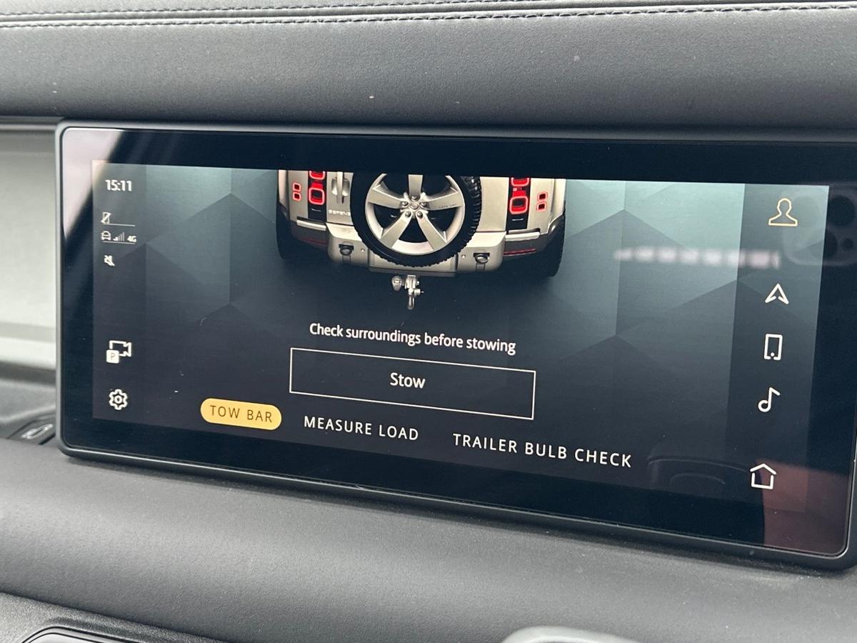 Electrically deployable tow bar 19" full size spare wheel 19" Style 6010 All-terrain tyres Centre console with armrest Online Pack with Data Plan Remote Sound System 3D surround camera Traffic Sign Recognition and Adaptive Speed Limiter Cruise control and Speed Limiter Terrain Response Exterior signage panel Locking wheel nuts Privacy glass Standard roof Standard tail door LED headlights LED tail lights Manual Headlight Levelling