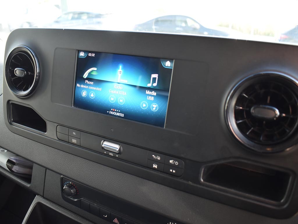Bluetooth connectivity Comfort overhead control panel Communication module (LTE) for digital services Outside temperature gauge Prewiring for parameterizable special module (PSM) Rev counter Speedometer Trip computer Wifi hotspot 5V USB-C socket Additional USB-C socket Apple Carplay/Android Auto Digital radio (DAB) Adaptive brake lights Double-wing rear-end doors Electric front windows Headlight assistant Heat insulated windscreen with filter band Heat insulating glass Lights for left hand traffic